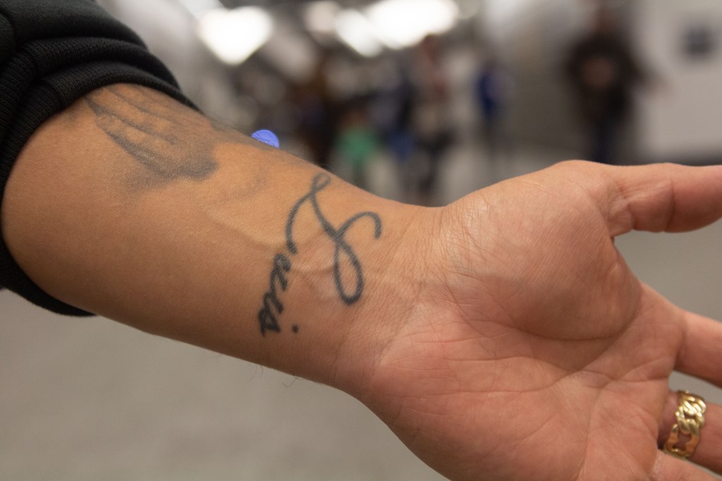 J.J. has his father’s name tattooed across his wrist. Lue Palmer